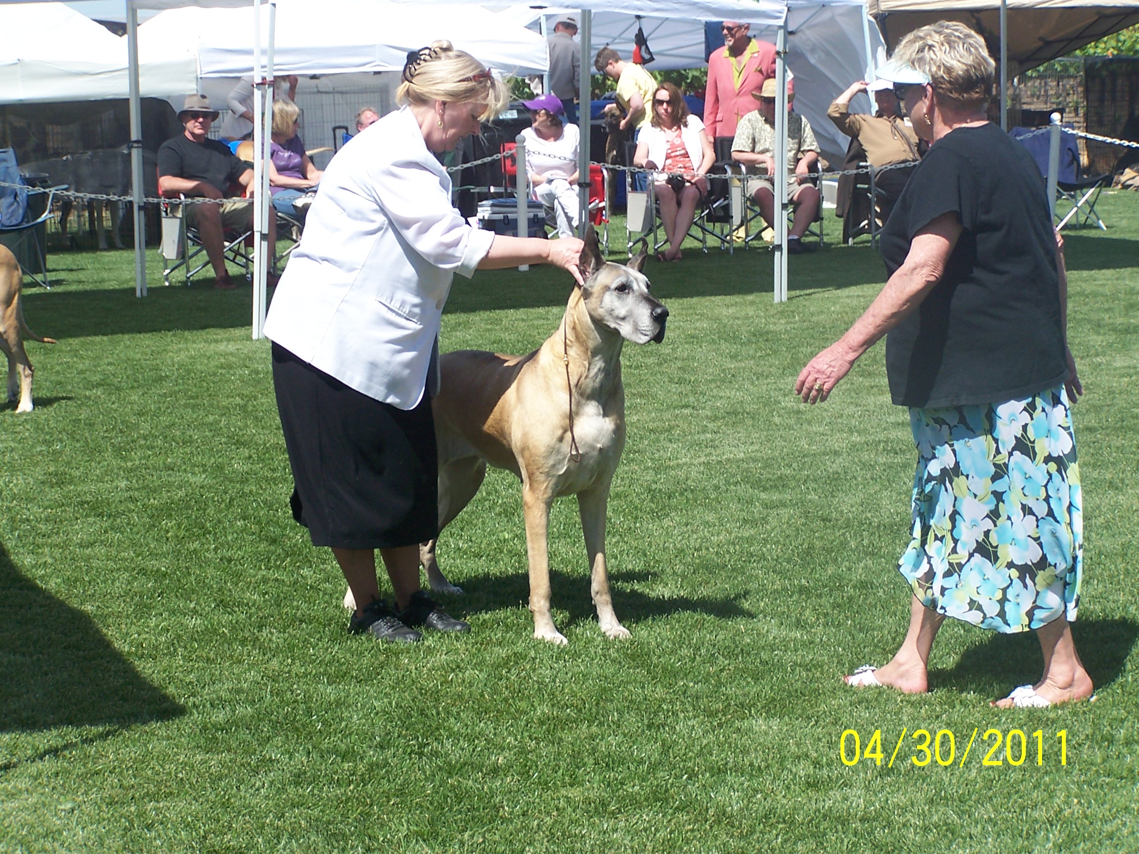Lacey is shown above at the GDCNC specialty sat 4/29/11 at 8 1/2 years young. Lacey loves to be in the show ring and is easy to show because she loves it so much. Unfortunately she hurt her foot 3 days prior to the show so she was limping a bit but she still had a great time.